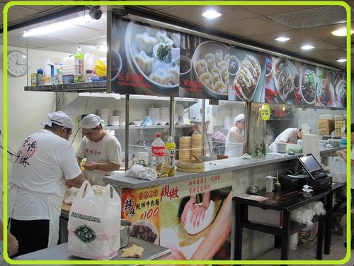 一覽無遺的開放式廚房和正在包鍋貼與蒸餃的師傅
