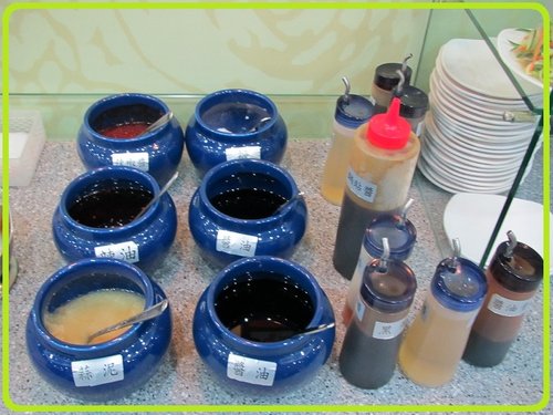 各式自己調配的沾醬(我覺得鍋貼醬最好吃,沾甚麼都對味)