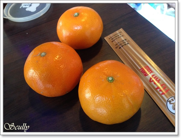 點好餐沒多久服務生就發放水果,套餐都有附餐後水果,今日是橘子,很甜很多汁
