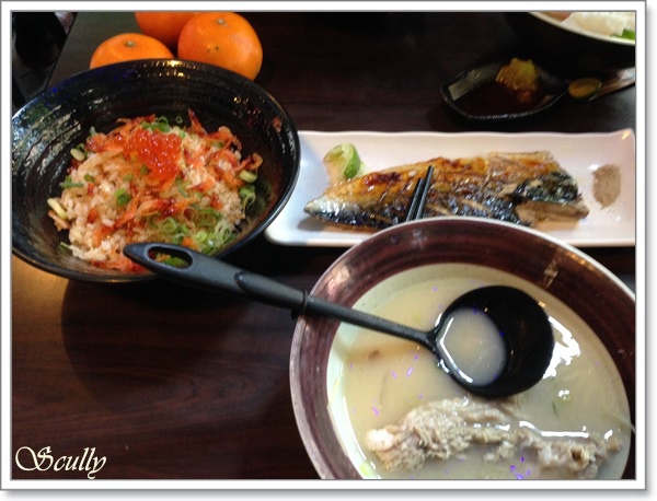三多屋爸爸嘴今日套餐$250:有挪威鯖魚、XO醬櫻花蝦鮭魚炒飯、味增魚湯,看起來也相當豐盛!!