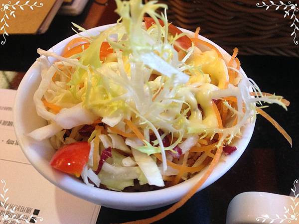 生菜沙拉:生菜都切得很細再搭上特製優格醬,酸甜清爽!