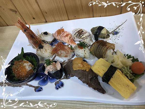 龍城大滿貫(12貫)$700:有十二種不同的握壽司,有鮭魚、花枝、天使蝦、鮑魚、海鱺魚、穴子魚、紅甘魚、星鰻、玉子燒、鮭魚卵、北海道干貝、赤海膽牛小排,看得我眼花撩亂的,這道是製作最久的一道,點時要注意哦!!