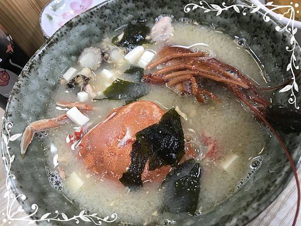 小龍蝦海鮮味增湯$150:這是菜單裡沒有的隱藏版本,裡面有小龍蝦+牛角蟹+帆立貝+鮭魚肉,超級豐盛哦!!