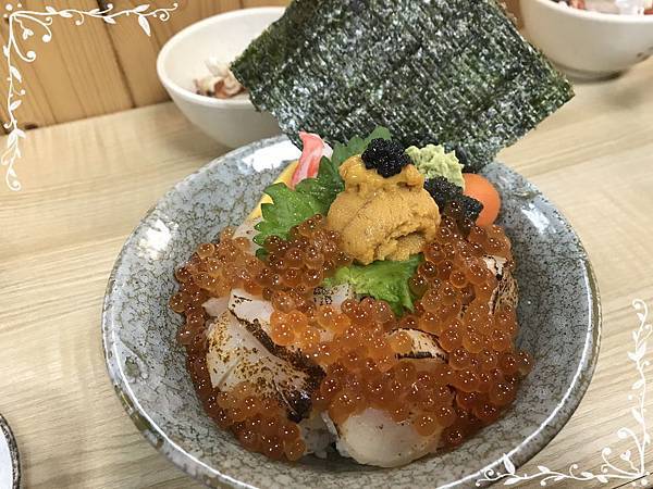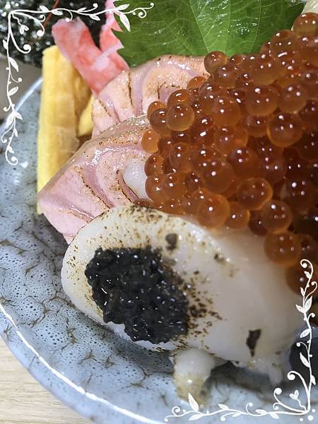 干貝還加了魚子醬,鮭魚也很肥美,吃起來真是滿滿的鮮味在口中跳耀著呢~
